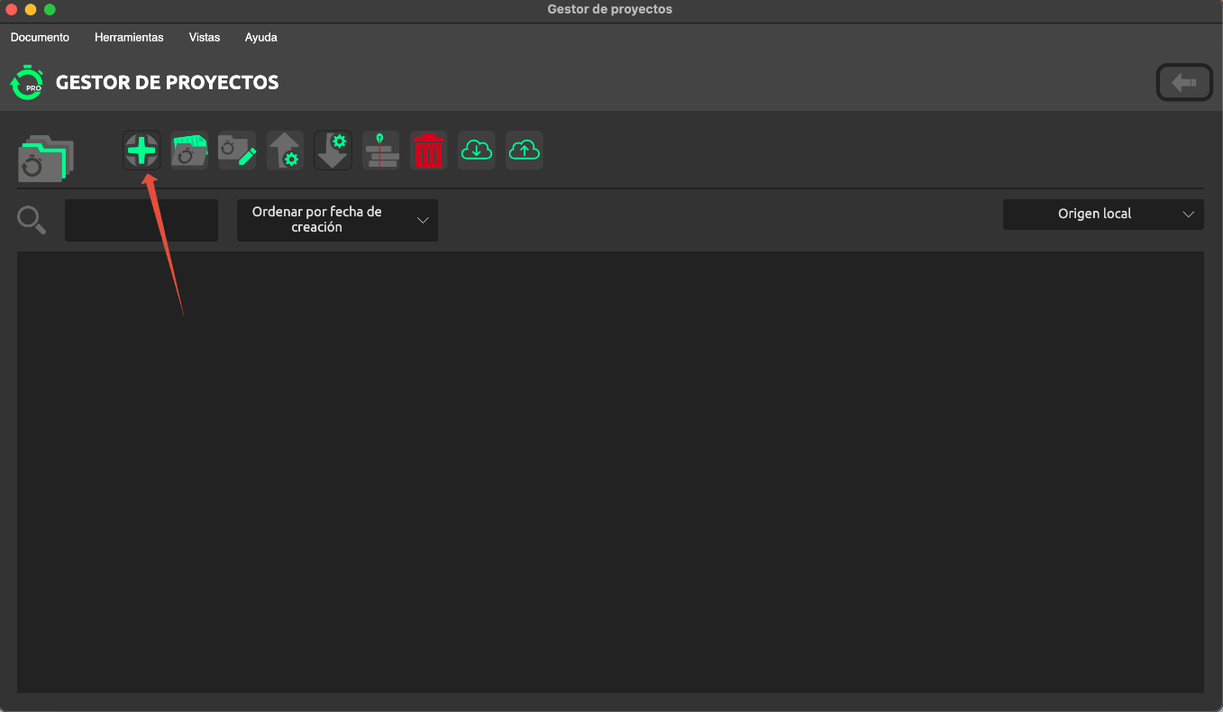 To create a new project, open Longomatch and select the ‘Projects’ option, which will take you to the Project Manager. Once there, click on the ‘+’ icon and you will be able to choose from the different project options that can be created in Longomatch.